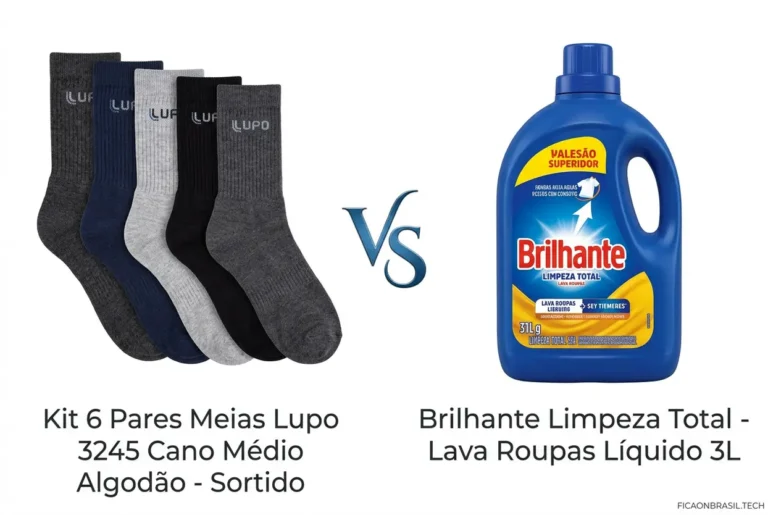 Descubra qual essencial do dia a dia é superior em 2026: o conforto das Meias Lupo ou a eficiência do Lava Roupas Brilhante. Análise completa.