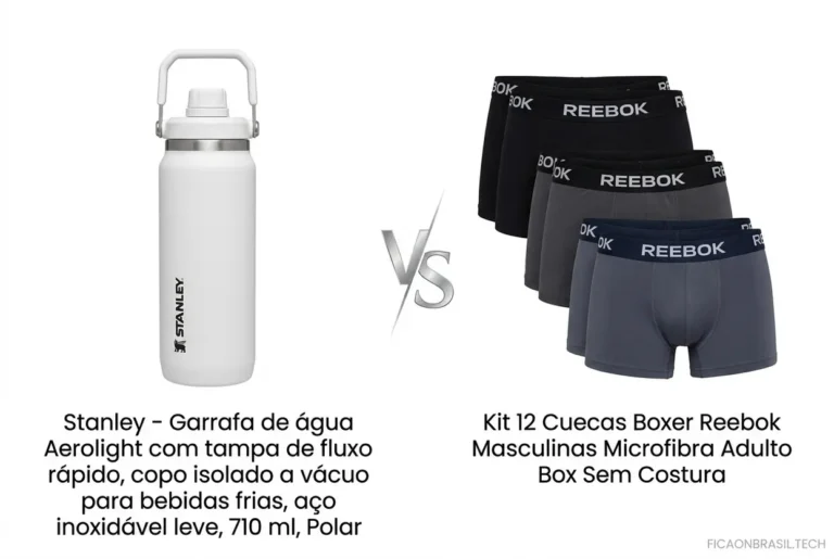 Descubra qual investimento é mais inteligente em 2026: a durabilidade da Garrafa Stanley Aerolight ou o conforto do Kit Cuecas Reebok Microfibra. Análise completa.